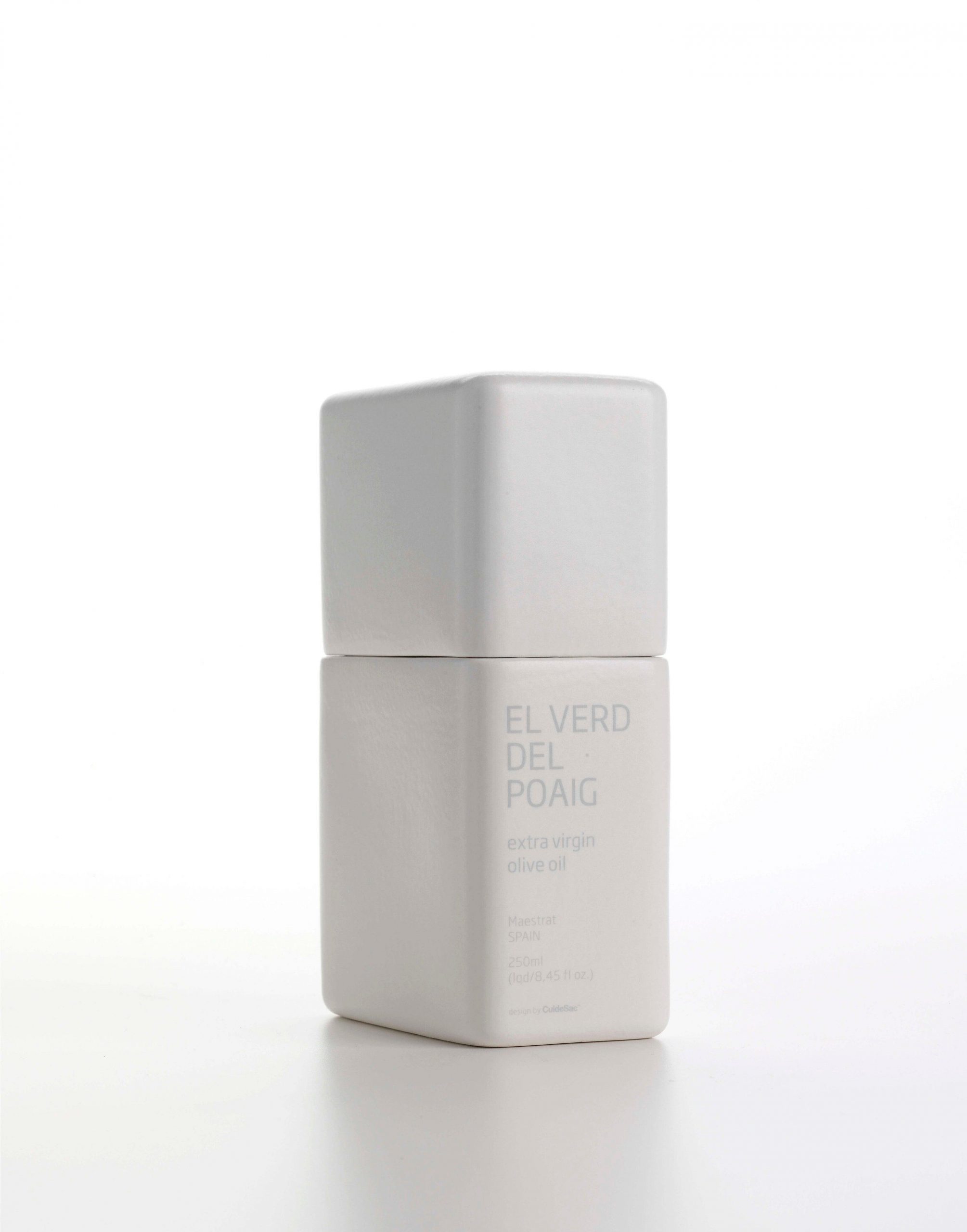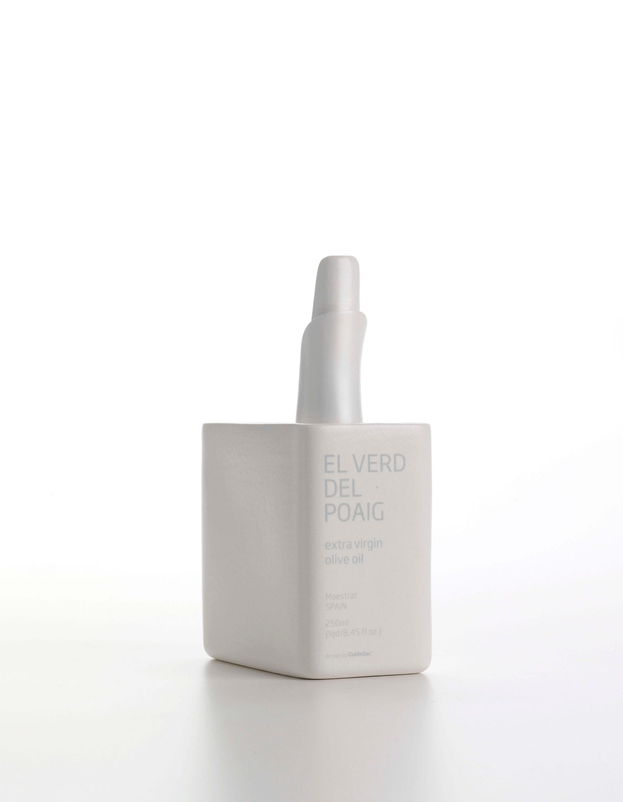 EL VERD DEL POAIG es un aceite de oliva virgen extra ecológico exclusivo y de producción limitada con un máximo para la temporada 2024/2025 de 4300 botellas. Presentado en ´oliera´ de porcelana blanca hecha a mano, de 250ml. de capacidad. Se presenta en un ´coupage´ de cuatro variedades seleccionadas cada temporada por Manuel, el maestro del aceite de EL POAIG. La variedad principal siempre es la CANETERA, autóctona del MAESTRAT (comarca en el límite entre Valencia y Cataluña) Se trata de una variedad endémica que no se reproduce en plantaciones nuevas por la dificultad de supervivencia, y que produce aceites alto polifenólicos y con mucho carácter.