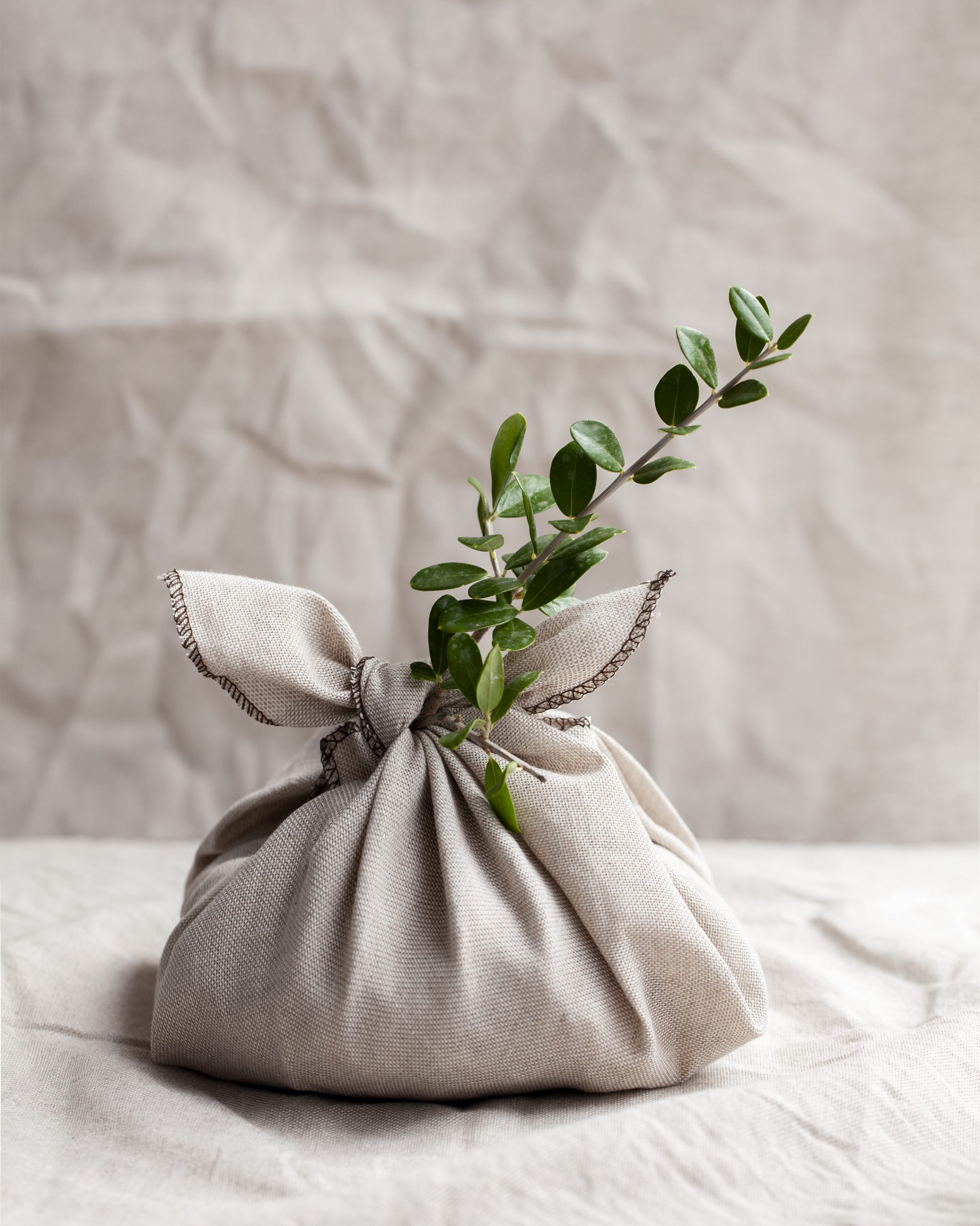 Envuelta en un tradicional Furoshiki de algodón. Bonito, sostenible y práctico que después podrás utilizar como toalla. Medidas 45 x 45 cms.