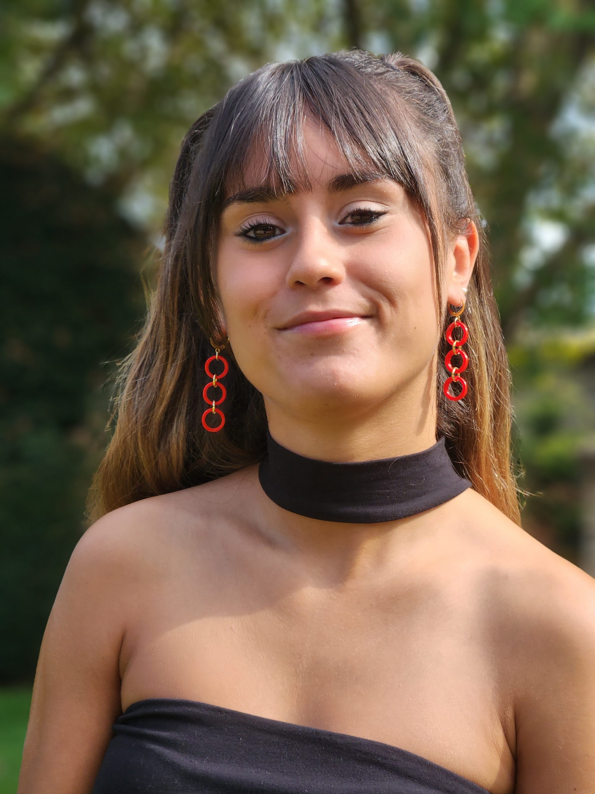Pendientes diseñados e imprimidos en 3D con materiales 100% reciclados (corteza de árbol, botellas de plástico, cáscara de vieira, etc)