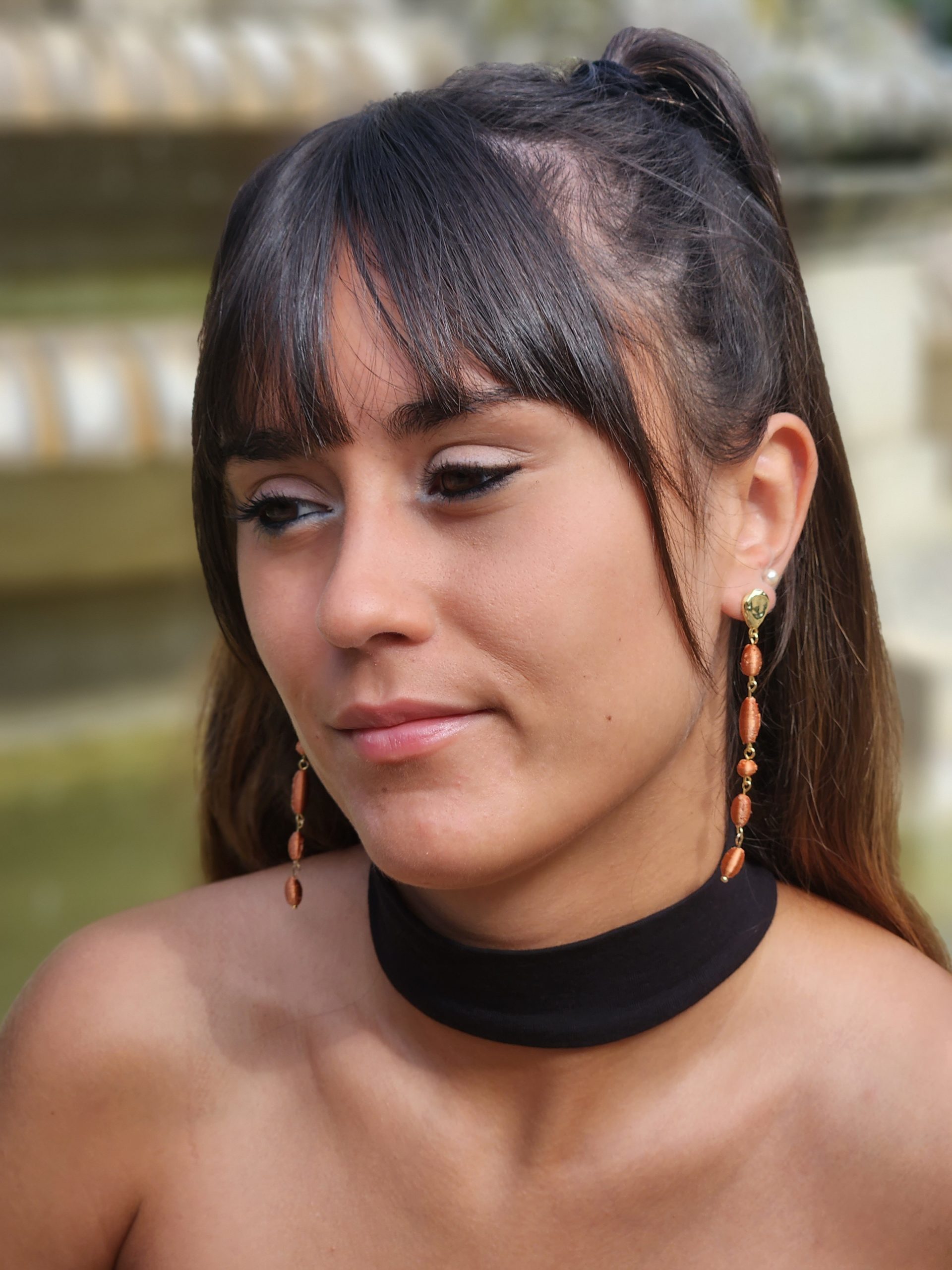 Pendientes diseñados e imprimidos en 3D con materiales 100% reciclados (corteza de árbol, botellas de plástico, cáscara de vieira, etc)